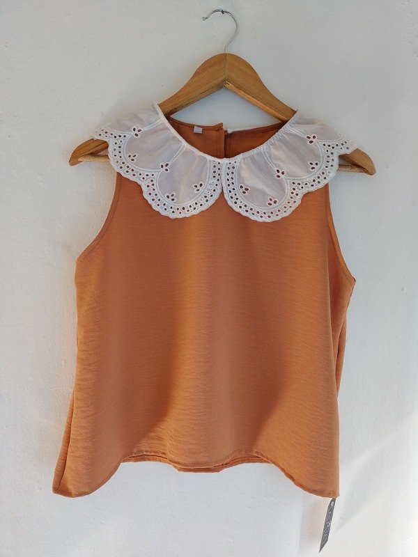 CREPE, CUELLO DE BRODERIE.